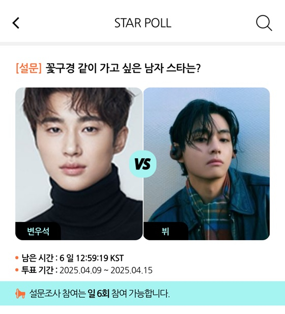 모바일 아티스트 종합 콘텐츠 앱 스타폴(STARPOLL)은 9일부터 15일까지 '꽃구경 같이 가고 싶은 남자 스타는?'이라는 주제로 설문 조사를 진행한다.