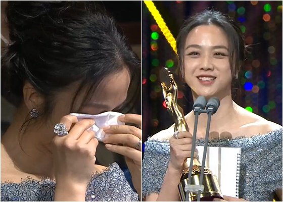 탕웨이는 지난 25일 여의도 KBS홀에서 열린 제 43회 청룡영화상 시상식에서 여우주연상을 품에 안았다.
