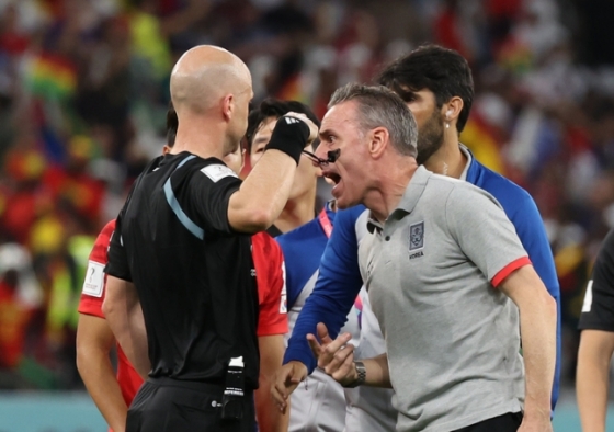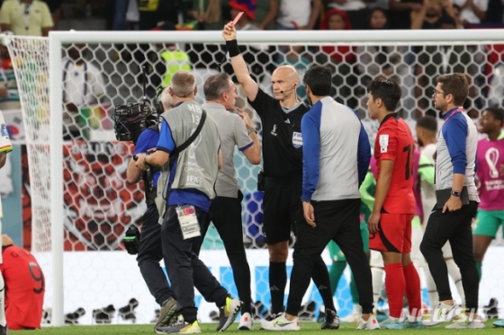 [알라이얀(카타르)=김명석 기자] 파울루 벤투(53·포르투갈) 감독이 가나전에서 레드카드를 받고 퇴장 당했다. 경기가 끝난 뒤 기술지역을 벗어나 주심에게 항의했다는 이유에서다. 손흥민(30·토트넘)과 이강인(21·마요르카) 등 선수들도 분노를 참지 못한 상황이긴 했으나, 사령탑인 벤투 감독마저 냉정함을 잃으면서 퇴장을 받았다. 순간을 참지 못한 벤투 감독은 16강 운명이 걸린 최종전 벤치 착석은 물론 라커룸도 출입할 수 없다.