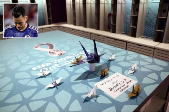 영국 더 선은 6일(한국시간) "승부차기 패배에도 일본 대표팀은 라커룸에 감동적인 메시지와 종이학을 남겼다"고 전했다.