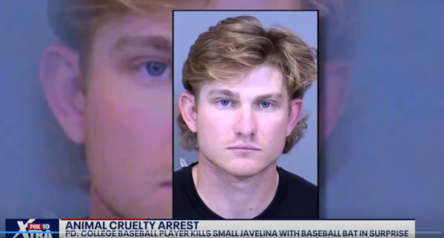 매체에 따르면 애리조나주 오타와 대학 2학년생인 로저 알렉산더(20)는 지난달 18일(현지시간) 서프라이즈시 인근 도로에서 마주친 '하발리나(Javelina)'로 불리는 야생돼지에 자동차 전조등을 비춰 움직이지 못하게 한 뒤 차에 보관 중이던 야구 배트를 휘둘러 죽였다. 알렉산더는 이 장면을 모두 비디오로 녹화했고, 심지어 카메라를 보고 웃고 즐기는 모습까지 보였다.