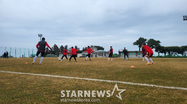 포항 선수단은 6일 제주 서귀포시 시민축구장에서 새 시즌 대비 동계 전지훈련에 나섰다. 훈련장에 나선 선수들이 "춥다"는 말을 반복할 정도로 날씨가 쌀쌀했던 데다, 비와 바람까지 더해지면서 날씨가 좋지는 않았지만 선수들은 새 시즌에 대한 의지를 훈련장 위에서 고스란히 드러냈다.