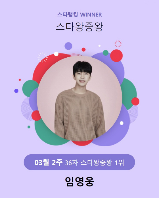임영웅은 3월 10일 오후 3시 1분부터 3월 17일 오후 3시까지 진행된 3월 2주(36차) 스타왕중왕 랭킹 투표에서 1위에 올랐다.