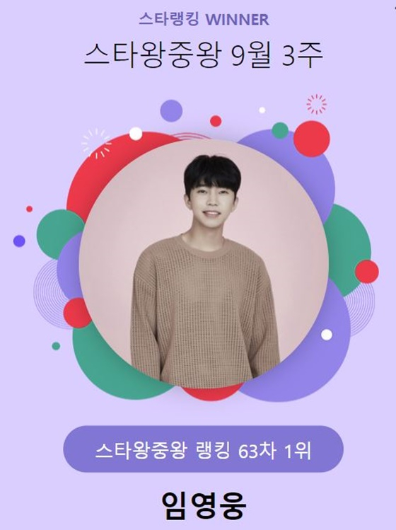 임영웅은 9월 15일 오후 3시 1분부터 9월 22일 오후 3시까지 진행된 9월 3주(63차) 스타왕중왕 랭킹 투표에서 1위에 올랐다.