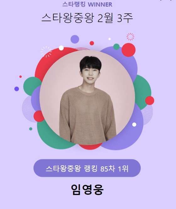 임영웅은 지난 16일 오후 3시 1분부터 23일 오후 3시까지 진행된 2월 3주차(85차) 스타랭킹 스타왕중왕 랭킹 투표에서 14만975표를 받아 1위를 차지했다.
