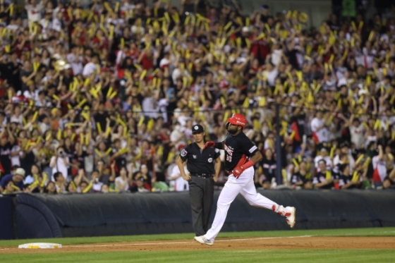 KIA 팬들은 경기 초반부터 뜨거운 응원을 보냈다. '기록의 사나이' 김도영이 보답했다. 국내 선수 최초로 40홈런-40도루에 도전하는 김도영은 정규리그를 확정한 가운데 이날 1번 타자로 전진 배치됐다. 1회초 타석에 들어선 김도영은 3루타를 때려내며 팬들을 열광케 했다.