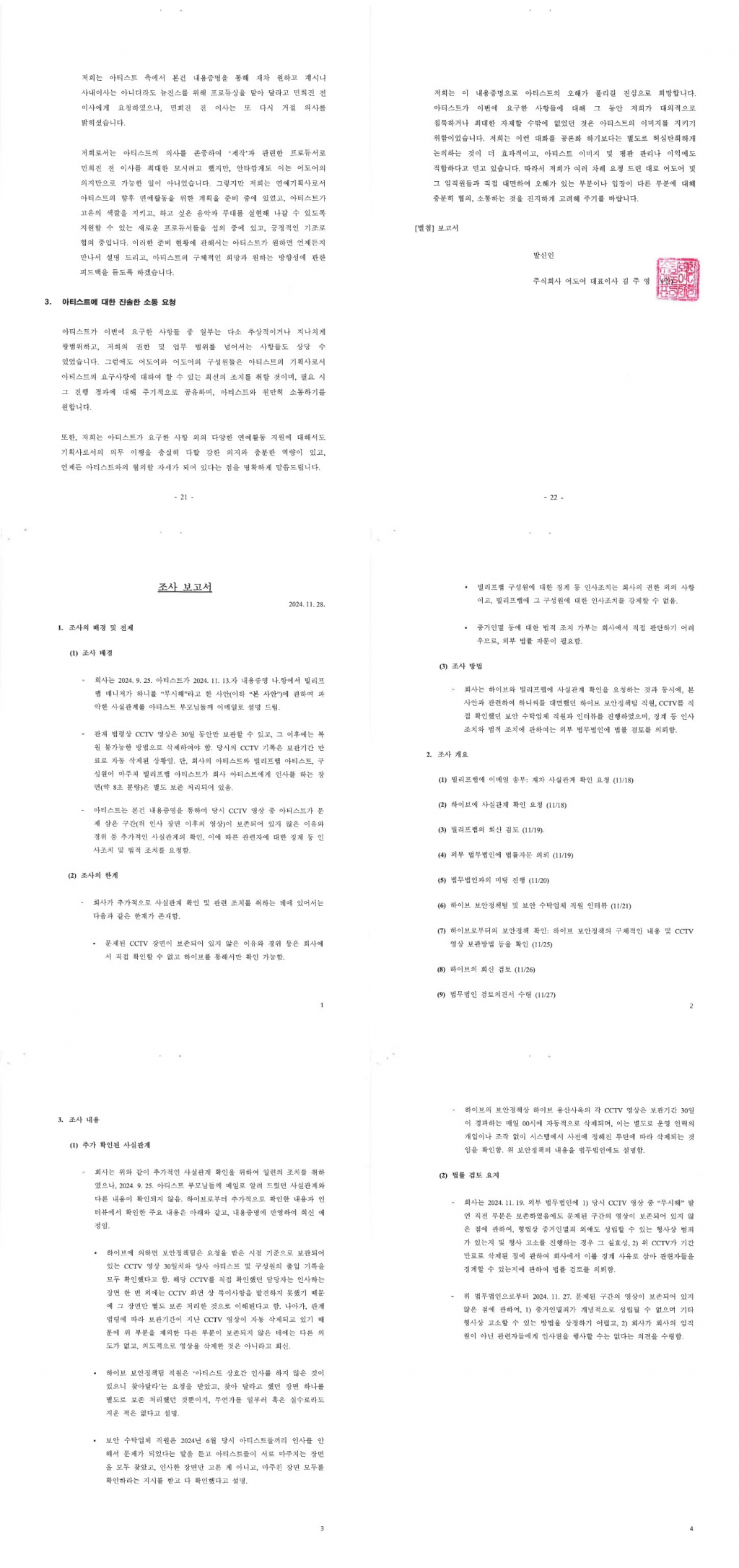 그러면서 어도어는 뉴진스가 제기한 △하이브가 "뉴 버리고 새로 판 짜면 될 일"이라는 결정을 한 데 대해 뉴진스의 매니지먼트사로서 필요한 모든 조치를 취하여 달라는 요청에 관하여 △하니씨에게 "무시해"라고 한 타 레이블 매니저에 대하여 어도어가 아무 조치도 취하지 않았고 문제를 방치했다는 주장에 관하여 △하이브 PR 구성원의 부적절한 발언에 대해 어도어의 조치를 촉구하는 요청에 관하여 △뉴진스가 연습생이던 시절의 사진, 동영상 등이 매체를 통해 무단 공개되고 삭제되지 않았다는 주장에 관하여 △하이브의 '밀어내기'에 의한 뉴진스의 피해를 해결하라는 요청에 관하여 △돌고래 유괴단 신우석 감독과의 분쟁과 이로 인한 기존 작업물이 사라지는 문제에 관하여 △뉴진스의 색깔을 지키고 뉴진스의 활동을 보장하기 위해 필요한 모든 조치를 취해달라는 요청에 관하여 △민희진 전 이사를 대표이사로 복귀시켜 달라는 요청에 관하여 등의 사안별 입장과 추가 조치 등에 대한 설명을 덧붙였다.