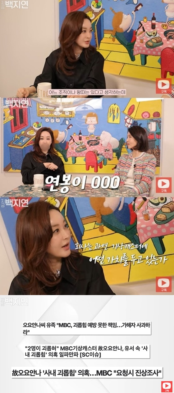이에 10일 공개된 유튜브 채널 '지금 백지연' 김혜은 편에선 오요안나 사태와 관련 이야기가 언급됐다.