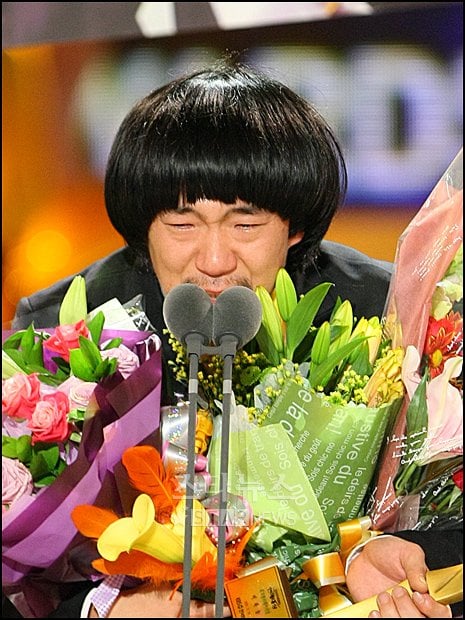 소감을 밝히기에 앞서 눈물로 범벅된 얼굴을 한 그는 목이 메어 말문을 쉽사리 열지 못했다. 어렵게 말문을 연 그는 "가수로서는 받아 보지 못한 상을 예능시상식에서 받게 되다니"라고 말하며 참았던 울음을 와락 쏟아냈다.