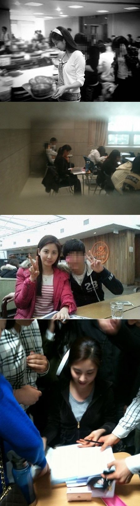 한편 소녀시대 멤버 유리의 대학 생활 모습도 10일께 공개됐다. 한 네티즌이 올린 사진에는 중앙대학교 연극영화학과 10학번 유리가 학생식당에서 밥을 먹는 모습, 캠퍼스를 활보하는 모습 등이 담겨있다.