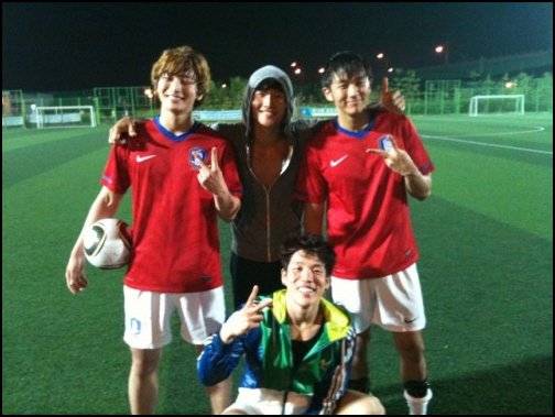 남성그룹 2AM의 창민이 멤버 임슬옹, 정진운 그리고 선배가수 김종국과 축구 경기가 끝난 후 찍은 사진을 공개했다.