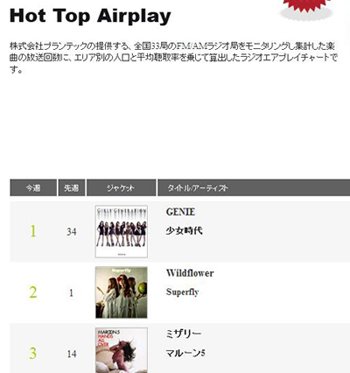 특히 '지니'는 에어플레이(방송횟수) 차트에서 1위를 차지해 눈길을 끈다. 에어플레이 차트는 일본 내 33개의 FM/AM라디오국에서 집계한 방송횟수에 지역별의 인구와 평균 청취율을 곱해 산출한 결과를 말하는 것. 일본 현지 언론의 큰 관심을 입증하는 부분이다.
