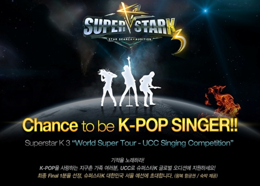 '슈퍼스타K' 오디션에 지원하고자 하는 외국인은 오는 30일까지 자신의 노래 실력이 담긴 영상을 인터넷 사이트 유투브에 업로드한 뒤, 해당 URL을 슈퍼스타K3 월드 슈퍼투어 UCC 오디션 페이지(www.superstark.co.kr/worldtour)에 등록하면 된다.