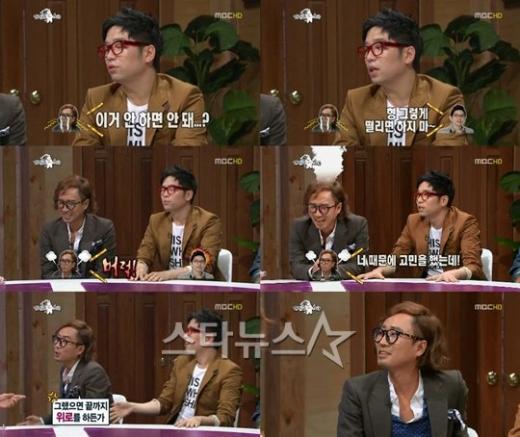 이적은 "정재형과 작년 MBC '놀러와'에 함께 출연했다. 정재형이 출연을 하기로 해놓고 너무 불안해했다. 며칠 전까지도 그냥 안 하면 안 되냐고 묻기에 그렇게 떨리면 하지 말라고 했더니 정재형이 버럭 화를 냈다"라고 전했다.