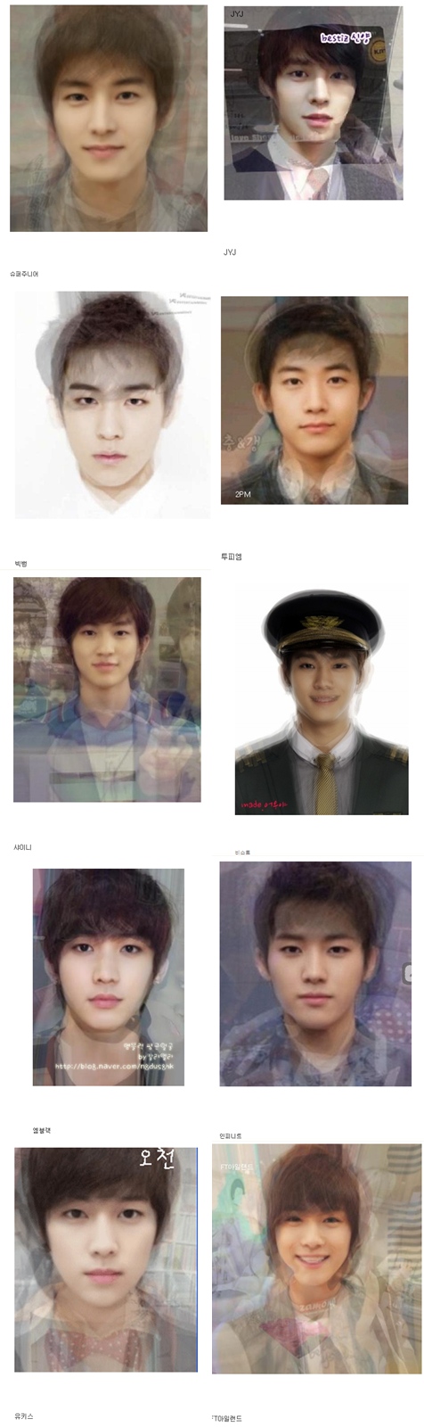 3일 오전 한 온라인 커뮤니티 게시판에는 '남자 아이돌 평균 외모'라는 제목의 글과 사진이 공개돼 팬들의 이목을 집중시켰다. 남자 아이돌 그룹 각 팀의 얼굴을 합성했다는 사진 13장이 첨부돼 있다. 이는 남자 아이돌 그룹 멤버의 얼굴을 전부 합성해 만든 사진으로 각 그룹마다 특징 있는 외모를 보여 이목을 끌었다.