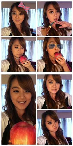 사진 속 혜림은 사과를 먹는 듯한 연기나 담배를 피우는 표정을 생생하게 지으며 웃음을 자아냈다. 뿐만 아니라 리본이나 선글라스 등의 스티커를 적절히 이용해 보는 재미를 한층 배가시켰다.