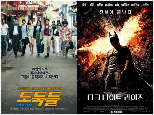 지난 8일 영화배급사 쇼박스는 '도둑들'(감독 최동훈)의 개봉일을 7월 25일로 결정했다고 밝혔다. '도둑들'보다 1주 앞선 19일에는 '다크 나이트 라이즈'(감독 크리스토퍼 놀란)가 개봉 예정이라 스크린 한미경쟁을 피할 수 없게 됐다.