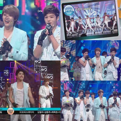 인피니트는 10일 오후 서울 등촌동 SBS 공개홀에서 생방송으로 진행된 가요 프로그램 '인기가요'에 출연, 지난 5월 중순 발표한 새 미니앨범 타이틀곡 '추격자'로 1위에 해당하는 뮤티즌송을 차지했다.