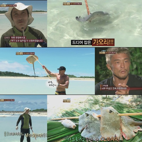 병만족은 10일 방송된 SBS '정글의 법칙 in 바누아투'(이하 '정글2')에서 약 3시간 여 만에 가오리 사냥에 성공했다.