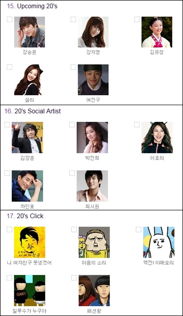 지난해 시상식과 달리 눈에 띄는 부분은 새롭게 추가된 소셜아티스트, 20's 클릭, 업커밍 20's 부문이다. 젊은 감각의 시상식이니만큼 트렌드에 발맞춰 유동적으로 스타를 선정하겠다는 방침인 셈.
