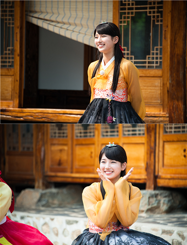 수지 역시 한복을 입고 등장, 게스트로 출연한 배우 강지섭과 강동호는 이를 보고 극찬을 아끼지 않았다.