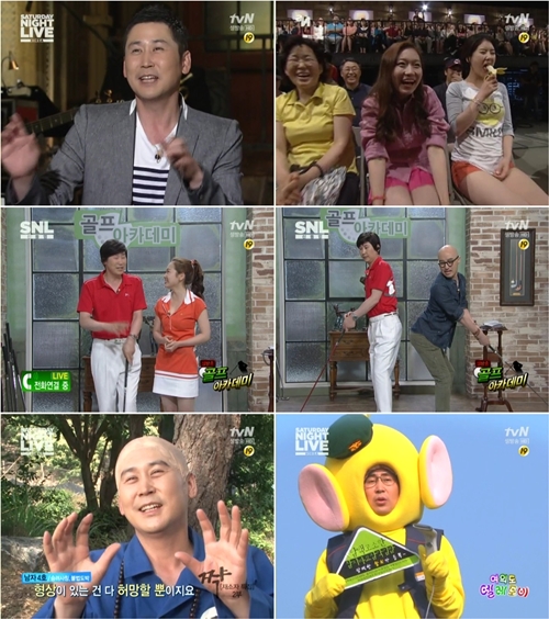 이날 신동엽은 'SNL 코리아2'에서 '골프 아카데미' '스타쇼 진품명품' '쨕' '여의도 텔레토비' '현장출동' 등의 코너에서 지상파 방송에서는 쉽게 볼 수 없던 개그로 시청자들의 배꼽을 간지럽혔다.