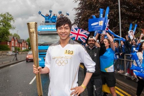 24일 2012 런던 올림픽 무선통신 분야 및 성화 봉송 후원사인 삼성전자에 따르면 이승기는 23일(현지시간) 영국 맨체스터 인근 도시인 로치데일의 스트랫퍼드 에비뉴에서부터 맨체스터 로드를 따라 약 320m 구간을 성화봉을 들고 뛰었다.