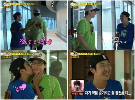 하하는 자신의 약점인 키스를 들키지 않기 위해 오히려 다른 멤버에게 뽀뽀세례를 퍼부었다. 하하는 유재석의 볼에 뽀뽀를 하고는 어색해진 분위기에 급 사과를 건넸다.