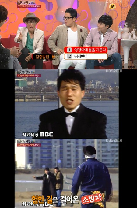 그는 "'엉덩이에 불을 붙이면 달리기가 더 빨라질까'라는 실험이었고 우리는 실제 엉덩이에 불을 붙이고 뛰었다"며 "확실히 엉덩이에 불을 붙이고 뛰니 빠르더라"라며 너털웃음을 지었다.