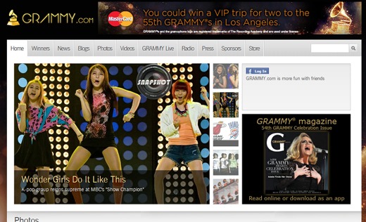27일 미국의 권위 있는 음악 시상식 그래미어워드 공식홈페이지 '그래미닷컴'은 '트렌딩 포토' 섹션을 마련, 최근 가장 많은 조회수와 댓글 등 뜨거운 반응을 얻은 사진의 주인공으로 원더걸스를 꼽았다.