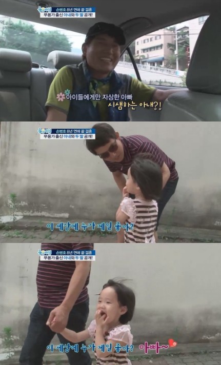 이날 둘째 딸 지아 양을 데리러 가기 위해 유치원을 향하는 과정에서 아내 최지연 씨가 "나에게는 자상하지 않다"고 시샘을 늘어놓자, 손병호는 "자식에게 사랑하기도 내 몸이 모자라다 보니 어쩔 수 없더라"며 말문을 열었다.