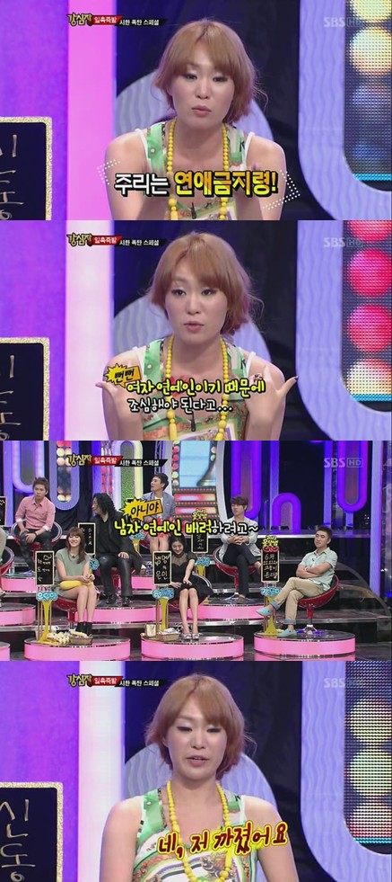 개그우먼 정주리가 소속사로부터 연애금지령을 받았다고 고백했다.