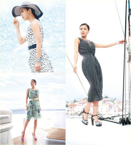 하지원이 로맨틱하거나 시크한 다양한 분위기의 원피스 바캉스룩을 선보였다.