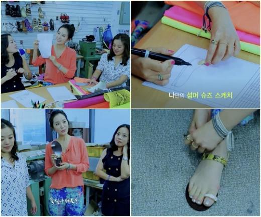 직접 디자인 아이디어 구상과 스케치, 제작과정을 소화해낸 김유미는 완성된 섬머 슈즈를 직접 신어보며 기쁨을 드러냈다.