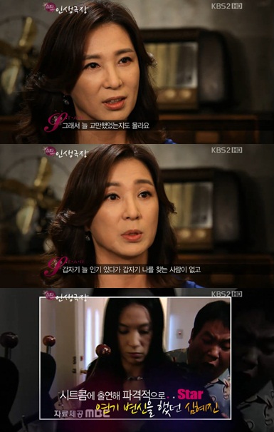 29일 오후 방송된 KBS 2TV '스타인생극장'에서 심혜진은 슬럼프를 극복하게 된 계기를 공개했다.