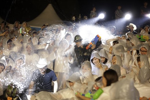 이날 공연은 무대 뒤로 호수가 펼쳐진 가운데 관객에 시원한 '물쇼'를 선사했다. 공연을 기획한 무붕 측은 관객 전원에게 물총과 우비, 티셔츠 등을 제공했고, 멤버들은 공연 도중 돌발 물 전쟁을 펼친 것.