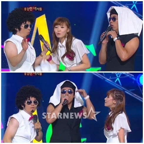 '용감한녀석들'은 1일 방송 외에도 KBS와 MBC 파업에 대한 '지지의 메시지'를 보내왔다. 앞서 서PD와 대결에서 '통편집'을 당했던 박성광은 "언론의 자유를 막으려 한다"는 말로 부당함을 표하기도 했다.