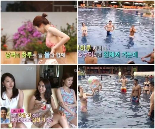 특히 이번 방송에서는 등번호가 쓰인 '짝'의 공식 재킷 대신 여자들은 아찔한 비키니 룩을 입고, 남자들은 웃옷을 벗어 근육질 몸매를 자랑해 눈길을 모았다.