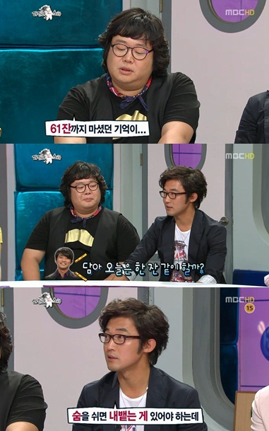 4일 오후 방송된 MBC '황금어장-라디오스타'에서 연예계 주당인 안재욱은 개그계 주당 류담과 포장마차서 술 마신 에피소드를 밝혔다.