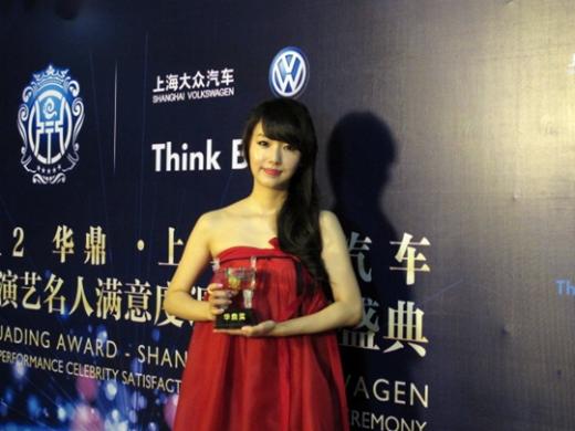 한류스타 이정현이 중국 화정상 시상식에서 아시아 최고 인기 대상을 수상하며 한복 드레스를 선보였다.