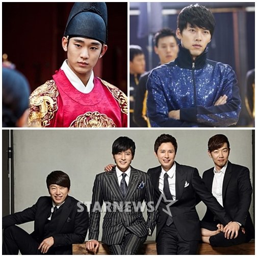 왼쪽 위부터 시계방향으로 '해품달'의 김수현, '시크릿가든'의 현빈, '신사의 품격'의 김수로 장동건 김민종 이종혁