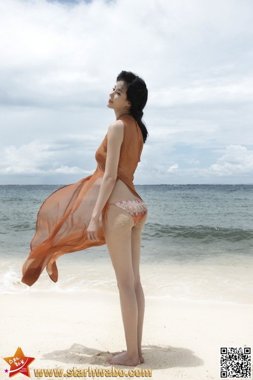 또 코랄 오렌지 컬러가 매력적인 수영복에 블랙 색상의 볼레로와 화려한 넥크레스를 매치해 해변가의 파티 퀸으로 변신했다.