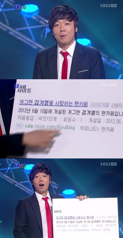 이날 방송에서 김기열은 "얼마 전 쌍둥이 개그맨 이상호 이상민 형제가 나를 부르더니 내 팬카페가 있다고 알려줬다"며 "팬카페가 개설된 지 한 달이 넘었는데 회원수가 고작 1명이다"라고 밝혔다.