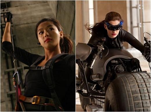 비슷한 개봉 시기, 스타 감독과 그 패밀리의 만남 외에도 두 작품을 비교하는 또 다른 재미가 있으니 바로 두 히로인 전지현과 앤 해서웨이의 캐릭터 비교다. 청순 여신의 이미지를 훌훌 털고 늘씬한 보디라인을 그대로 드러내는 위험한 괴도가 된 두 여배우의 반전 매력이 충만하다.