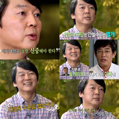 안 원장은 '당시 빌 게이츠와 만남을 정치적인 쇼라고 보는 시선이 있다'라는 MC들의 질문에 "기부재단에 대한 조언을 얻기 위해 만나러 미국으로 갔다"고 밝혔다.