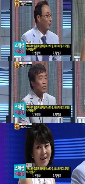 이날 방송에서 스페셜 가전 3종 세트가 걸린 1라운드에 '우리나라의 금메달리스트 중 최초의 광고 모델은'라는 문제가 주어졌다. 보기에는 1번 현정화, 2번 황영조가 있었다.
