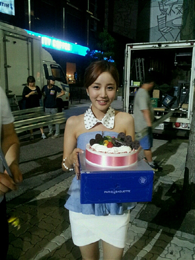 이는 지난 27일 생일을 맞은 윤진이가 스태프들에게 받은 케이크를 인증한 것이다.