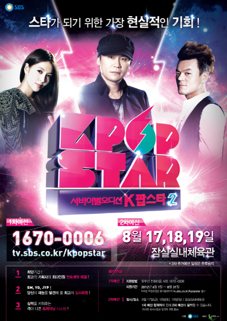 한편, 'K팝스타 시즌2'는 8월 국내를 시작으로 세계 곳곳에 숨은 인재를 찾기 위해 5개 도시(뉴욕, LA,런던, 호주, 벤쿠버)에서 글로벌 오디션을 진행할 예정이다.