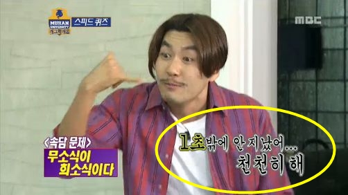 이가운데 제작진은 멤버들의 자기 소개에서 "1초만에 번복한 주장", "의지의 고졸" 등의 자막을 내보내는 한편 스피드 퀴즈 진행 중 노홍철이 초조해하자 "1초밖에 안 지났어 천천히 해"라는 자막을 쓰는 등 "1초"와 "의지"라는 자막을 번갈아 써 눈길을 모았다.