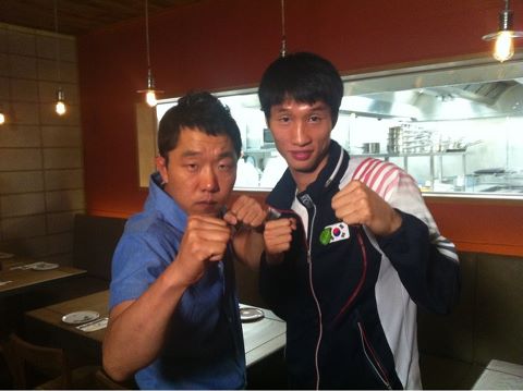 방송인 김제동이 남자 복싱 한순철 선수와 함께한 사진을 공개했다.